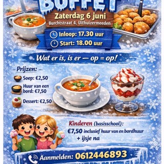 zaterdag 6 juni 2026 , 17:30Diepvriesbuffet