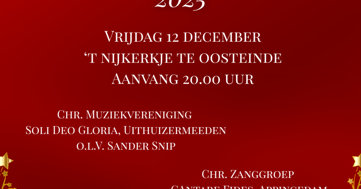 Chr. Muziekvereniging S.D.G. uit Uithuizermeeden o.l.v. Sander Snip en de christelijke zanggroep Cantare Fides uit Appingedam o.l.v. Jan Beukema nemen u mee richting Kerst door middel van een gevarieerd programma met bekenden en minder bekende (maar daarom zeker niet minder mooi) kerstmuziek, liederen en samenzang.