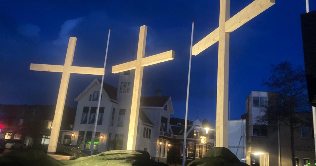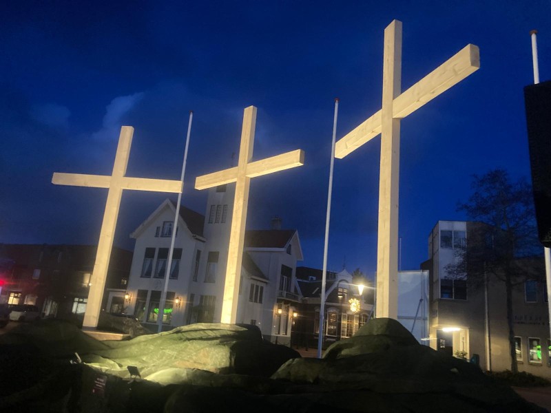 Onder grote belangstelling werd zaterdagavond een korte bijeenkomst gehouden bij de kruisen op het Johan van Veenplein als startmoment voor de Stille Week. Medewerking werd verleend door gospelkoor Testiffy. Onder een strakblauwe lucht een moment van bezinning.