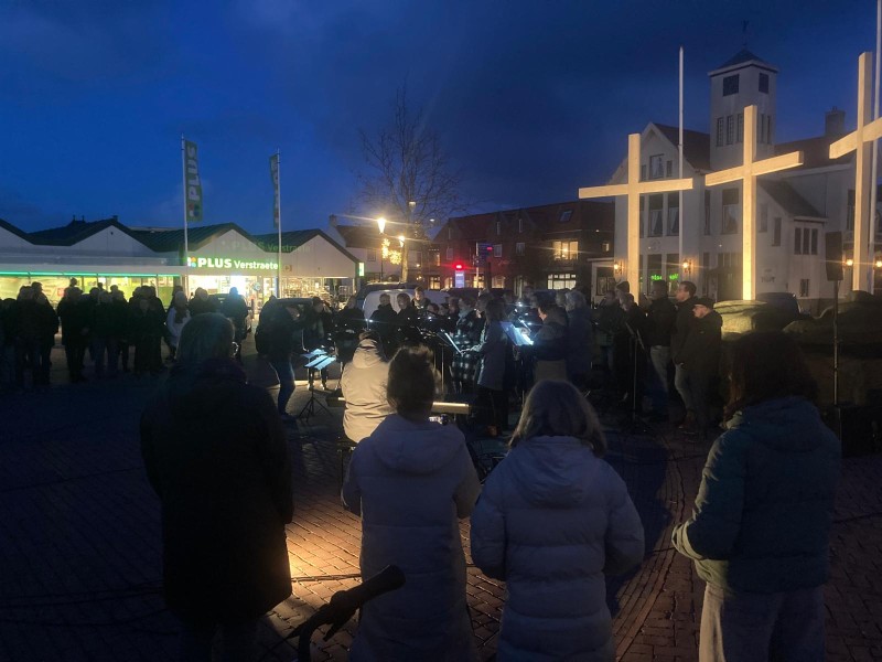 Grote belangstelling bij eerste muzikale overdenking op het Johan van Veenplein.