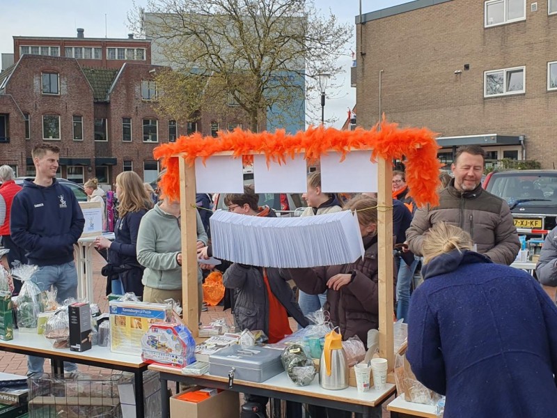 Na een koude start van de dag werd het steeds drukker en gezelliger op het Johan van Veenplein. De Koningmarkt bleek ook dit jaar weer een succes. Muzikale medewerking was er ook deze keer weer van de Christelijke Muziekvereniging SDG die vanuit de deels gerenoveerde muziektempel (nieuw dak) weer voor een vrolijke ondersteuning zorgde.