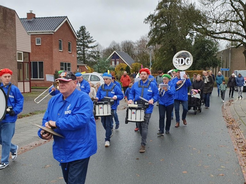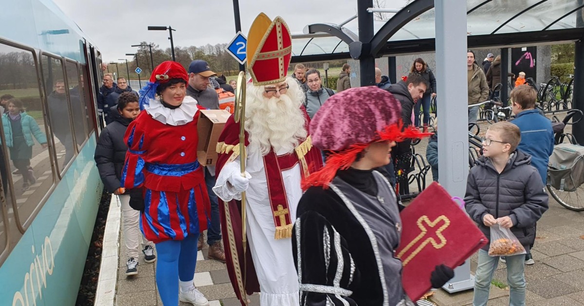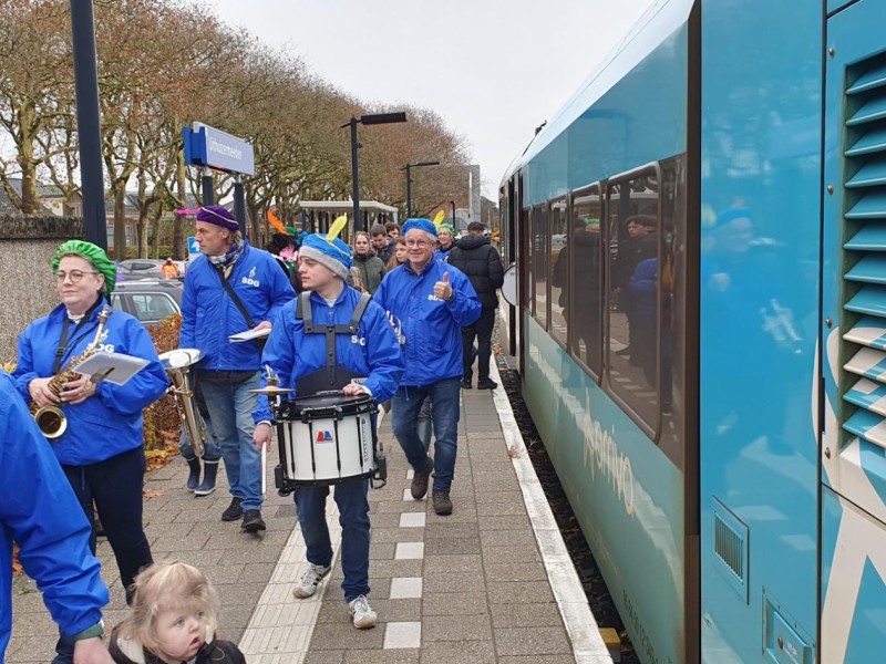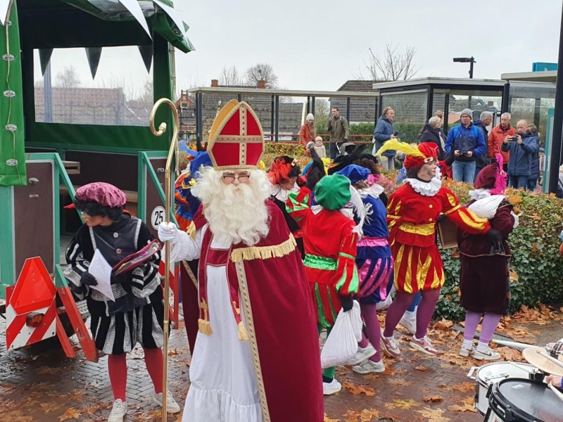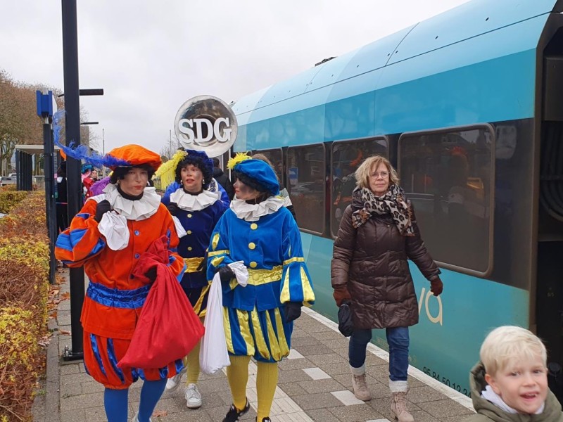 Sinterklaas en een grote groep Pieten zijn ook aangekomen in ons dorp. Met de trein van 13.00 uur arriveerde de Sint op het station. De trein, afkomstig vanuit de Eemshaven, zat vol met kinderen (natuurlijk ook met ouders en opa en oma's) en muzikanten van SDG die Sinterklaas eerder op de morgen al had ontvangen in de Eemshaven. Omdat de stoomboot niet verder kon varen dan het duitse eiland Borkum kwam Sinterklaas deze keer met de Borkumlijn van AG Ems naar de Eemshaven.