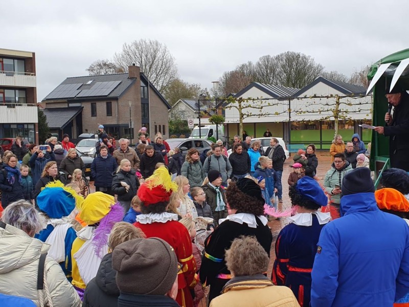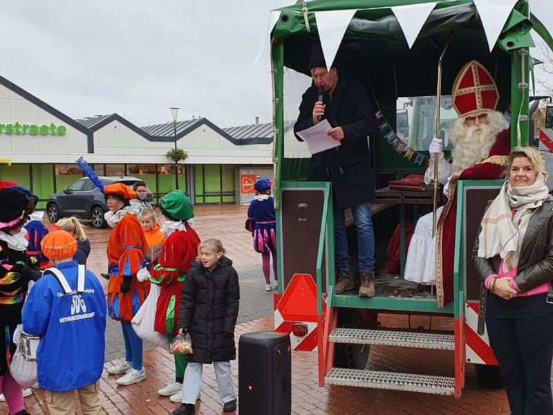 Op het Johan van Veenplein werd Sinterklaas nog toegesproken door de voorzitter van Stichting Dorpsbelangen Uithuizermeeden Geert Kruize.