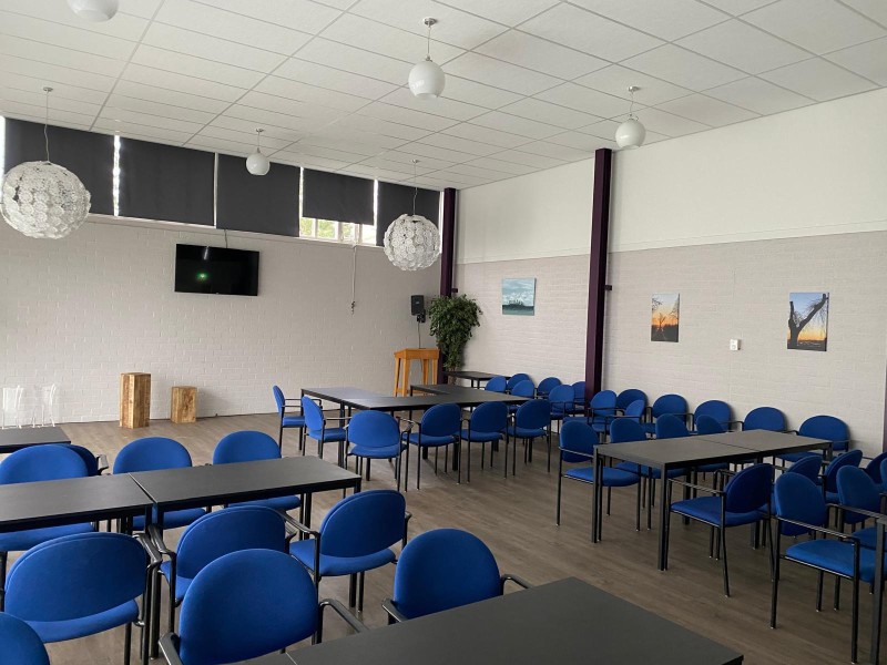 convectoren. Stoelen, rolgordijnen, pvc vloer.